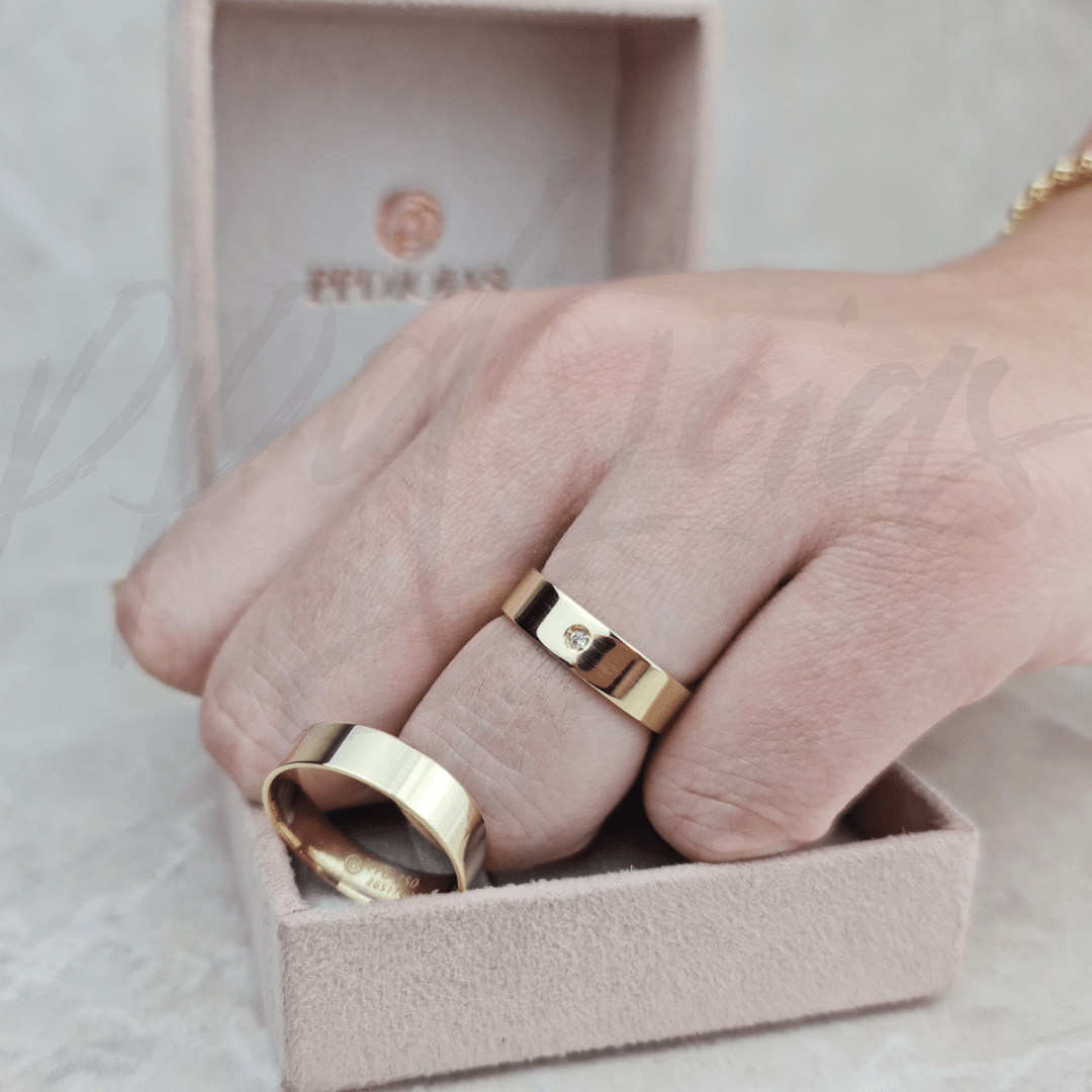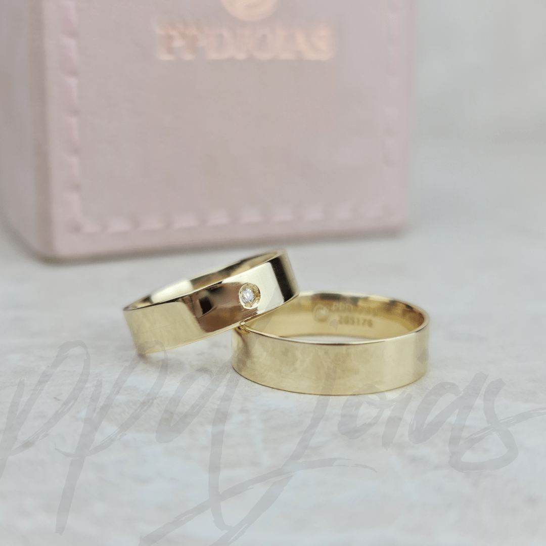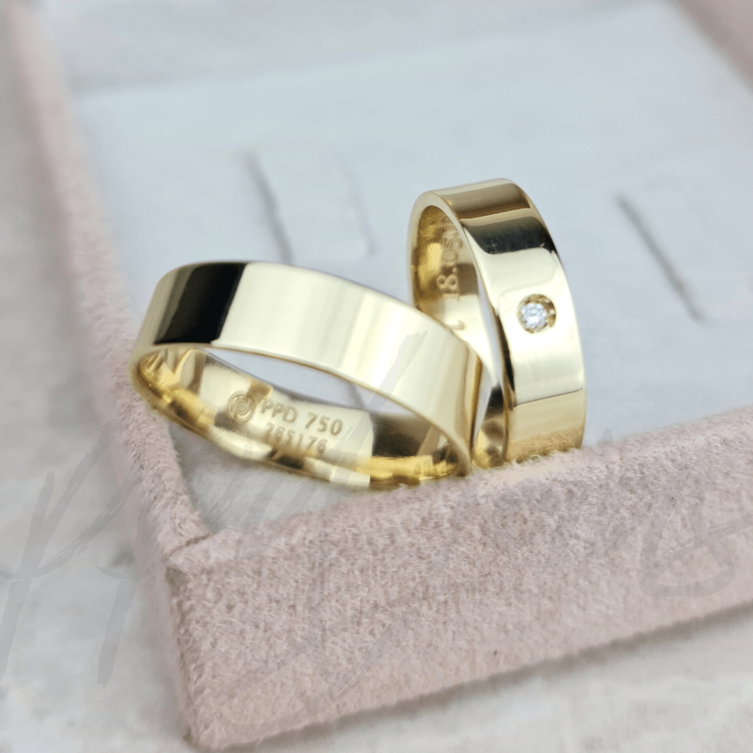 | MATERIAL | Alianças:Estrutura – Ouro 18k – 750 Ouro Amarelo 18k |